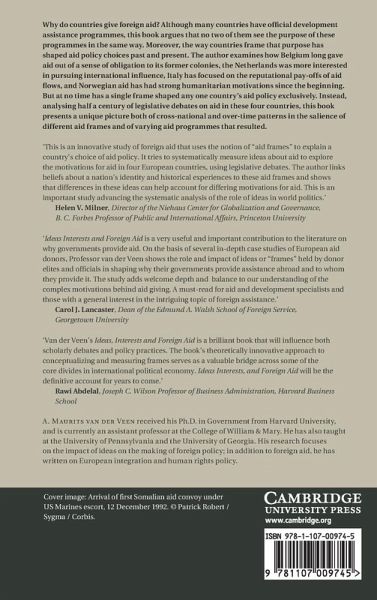 Why do countries give foreign aid? Although many countries have official development assistance programs, this book argues that no two of them see the purpose of these programmes in the same way. Moreover, the way countries frame that purpose has shaped aid policy choices past and present. The author examines how Belgium long gave aid out of a sense of obligation to its former colonies, The Netherlands was more interested in pursuing international influence, Italy has focused on the reputational payoffs of aid flows and Norwegian aid has had strong humanitarian motivations since the beginning. But at no time has a single frame shaped any one country's aid policy exclusively. Instead, analysing half a century of legislative debates on aid in these four countries, this book presents a unique picture both of cross-national and over time patterns in the salience of different aid frames and of varying aid programmes that resulted.