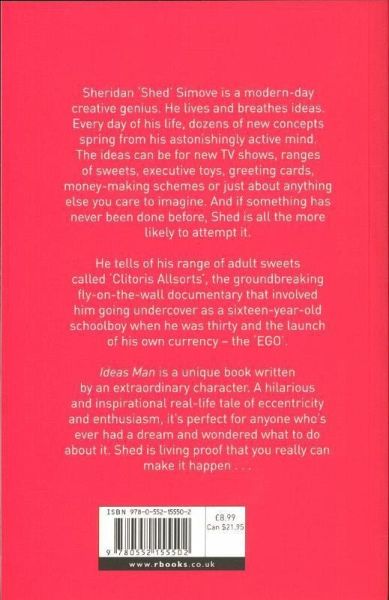 Learn secrets for success and how to unlock your creativity with a book that contains tips on how to achieve anything you desire and charts the extraordinary and hilarious real-life adventures of Britain's most inspirational IDEAS MAN. Sheridan 'Shed' Simove is a modern day creative genius. He lives and breathes ideas. Every day of his life dozens of new ideas spring from his astonishingly active mind. The ideas can relate to pretty much anything - TV shows ranges of sweets executive toys greeting cards money-making schemes - the list is endless. And if an idea hasn't been done before then Shed is sure to attempt it... IDEAS MAN is the true story of this visionary maverick's amazing adventures. At breakneck speed Shed describes how dozens of his ideas came to be how they succeed or sometimes disastrously fail. Some of Shed's ideas include: a range of adult sweets called 'Clitoris Allsorts' a groundbreaking documentary that involved him going undercover as a 16-year-old schoolboy (when he was 30) and the launch of his own currency - the 'EGO'. IDEAS MAN is a unique book written by a completely extraordinary character. A hilarious and inspirational real-life tale of eccentricity and enthusiasm it's perfect for anyone who's ever had a dream and wondered how to make it come true. Shed is living proof that you really can make it happen...