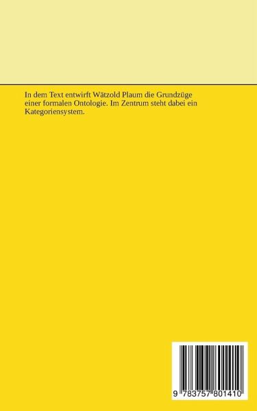 In dem Text entwirft Wätzold Plaum die Grundzüge einer formalen Ontologie. Im Zentrum steht dabei ein Kategoriensystem.