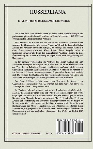 Das Erste Buch von Husserls Ideen zu einer reinen Phänome nologie und phänomenologischen Philosophie erschien zu Husserls Lebzeiten 1913, 1922 und 1928 in drei fast völlig identischen Auflagen. 1950 erschien im Rahmen der auf Grund des Nachlasses ver öffentlichten Ausgabe der Gesammelten Werke eine "Neue, auf Grund der handschriftlichen Zusätze des Verfassers erweiterte Auflage", im Auftrage des Husserl-Archivs in dieser Form her ausgegeben von Walter Biemel. Diese Ausgabe suchte in text kritisch verantworteter Form den mannigfachen Ansätzen Hus serls zu einer Überarbeitung des Werkes Rechnung zu tragen durch eine Neugestaltung des Haupttextes. In der nunmehr vorliegenden, im Auftrage des Husserl-Archivs von Karl Schuhmann besorgten Neuausgabe des Werkes wird im Ersten Halbband allein der Text der zu Lebzeiten Husserls er schienenen Auflagen wiedergegeben, während die sämtlichen handschriftlichen Zusätze des Verfassers im Rahmen der im Zwei ten Halbbande zusammengefaßten Ergänzenden Texte berück sichtigt sind. Zu dieser Neugestaltung des Bandes berechtigte und nötigte der Fortschritt der Editionsarbeit des Husserl-Archivs seit 1950 wie der Husserl-Forschung überhaupt. Die Entwicklung von Husserls Denken über die Fassung seiner Ideen von 1913 hinaus ist unterdessen vielfältig dokumentiert und erforscht, und zu gleich hat sich das Bedürfnis erneuert, auch wieder über den ur sprünglichen Text des Werks, wie es zu Husserls Lebzeiten er schien und wirkte, zu verfügen. Die Teilung des Bandes sollte das vergleichende Studium von Urtext und Vorstudien, Bearbei tungen und weitergehenden Entwürfen erleichtern.