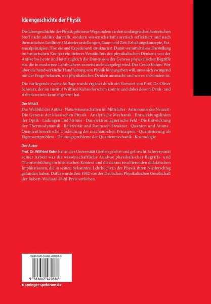 Die Ideengeschichte der Physik geht neue Wege, indem sie den umfangreichen historischen Stoff nicht additiv darstellt, sondern wissenschaftstheoretisch reflektiert und nach thematischen Leitlinien (Materievorstellungen, Raum und Zeit, Erhaltungskonzepte, Extremalprinzipien, Theorie und Experiment) strukturiert. Damit vermittelt diese Darstellung im historischen Kontext ein tieferes Verständnis des physikalischen Denkens von der Antike bis heute und lotet zugleich die Dimension der Genesis physikalischer Begriffe aus, die in modernen Lehrbüchern zumeist nicht dargelegt wird. Das Credo Kuhns: Wer über die handwerkliche Handhabung von Physik hinausgehen will, muss sich zwingend mit der Frage befassen, was physikalisches Denken ausmacht und wie es entstanden ist.