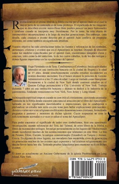 Hugo Fernandez is from Tena, Colombia but his path took him from bank managing at 23 years old, studying at Queens College in NYC, and finally becoming a restaurateur in NYC. His spiritual quest began upon becoming a Christian and reviewing meanings in the Bible. Meanings in Revelations seemed to be vague or lacking depth regardless of any denomination that offered explanations.Questions of symbols and their meanings sent him on an impassioned 31-year investigation of the Book of Revelations, cross -references with the Torah, Talmud, other books of the Bible, seminars, historical events, theologians and pastors from different churches. He investigated locations in Patmos, Ephesus, and ancient Constantinople (Istanbul) in Turkey and Greece where events of Revelations and the Bible are proposed to have taken place. He is currently a Governing Elder at the Presbyterian church on Long Island, New York.