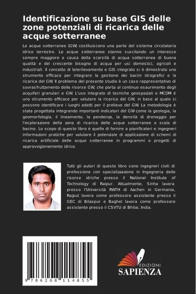 Le acque sotterranee (GW) costituiscono una parte del sistema circolatorio idrico terrestre. Le acque sotterranee stanno suscitando un interesse sempre maggiore a causa della scarsità di acqua sotterranea di buona qualità e del crescente bisogno di acqua per usi domestici, agricoli e industriali. Il concetto di telerilevamento e GIS integrato si è dimostrato uno strumento efficace per integrare la gestione dei bacini idrografici e la ricarica del GW. Il problema del presente studio è un caso rappresentativo di sovrasfruttamento delle risorse GW, che porta al continuo esaurimento degli acquiferi granulari e GW. L'uso integrato di tecniche geospaziali e MCDM è uno strumento efficace per valutare la ricarica del GW, in base al quale si possono identificare i luoghi adatti per il prelievo del GW. La metodologia è stata progettata integrando importanti indicatori del GW come la geologia, la geomorfologia, il lineamento, la pendenza, la densità di drenaggio per l'esplorazione della zona di ricarica delle acque sotterranee a scala di bacino. Lo scopo di questo libro è quello di fornire a pianificatori e ingegneri informazioni pratiche per valutare il potenziale di applicazione di schemi di ricarica artificiale delle acque sotterranee in programmi o progetti di approvvigionamento idrico.