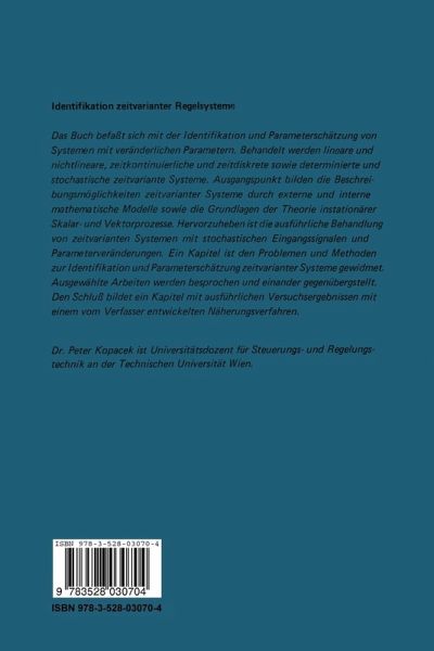 Das dynamische Verhalten zahlreicher industrieller Prozesse andert sich prozeB bedingt oder ungewollt mit der Zeit. Eine zufriedenstellende Regelung solcher Prozesse setzt moglichst genaue Kenntnisse ihres dynamischen Verhaltens voraus. Ihre mathematischen Modelle sollten moglichst genau bekannt sein. Die mathe matischen Modelle konnen in vielen Fallen nur experimentell gefunden werden, da eine rechnerische Modellerstellung meist zu aufwendig oder sogar unmoglich ist. Bisher wurde noch nie versucht, den Problemkreis der Identifikation von Regel systemen mit veranderlichen Parametern, sogenannter zeitvarianter Systeme, ge schlossen darzustellen. Daher erfolgt zunachst eine Zusammenstellung notwendiger Grundlagen aus der Theorie zeitvarianter Systeme. Besondere Beachtung finden zeitvariante Systeme mit zufalligen Parameteranderungen und/oder zufalligen Eingangssignalen (zeitvariante stochastische Systeme). Probleme der Identiftkation zeitvarianter Systeme werden aufgezeigt und ausgewahlte Arbeiten in libersicht licher Form Zllsammengestellt. Das vorliegende Buch kann und will infolge des umfangreichen Fachgebietes keinen Anspruch auf Vollstandigkeit erheben. Es soIl sowohl den praktisch tiitigen als auch den theoretisch interessierten Leser mit diesem Problemkreis vertraut machen. Flir die fachlichen Ratschlage im Zuge des Entstehens dieser Arbeit danke ich Herrn Prof. Dr. K.H. Fasol. Die numerischen Berechnungen in Abschnitt 1.2.1.3 wurden von M. Oswatitsch ausgeftihrt. Meiner Frau danke ich fur das Lesen der Korrekturen und Frau E. Eder fur die sorgfaltige Anfertigung der Reinschrift. Herm A. Schubert yom Verlag Vieweg danke ich fUr das Verstandnis und das Eingehen auf meine Wtinsche.