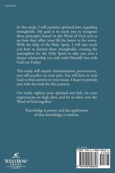 In this study, I will examine spiritual laws regarding strongholds. My goal is to teach you to recognize these principles found in the Word of God and to see how they affect your life for better or for worse. With the help of the Holy Spirit, I will also teach you how to destroy these strongholds, creating the atmosphere for the Holy Spirit to take you into a deeper relationship not only with Himself, but with God our Father. This study will require determination, perseverance, and self-sacrifice on your part. You will have to seek God to find answers to your issues. I hope to provide you with the tools for this journey. Get ready, tighten your spiritual seat belt, set your expectancies on high alert, and let us delve into the Word of God together. Knowledge is power, and the application of that knowledge is wisdom.