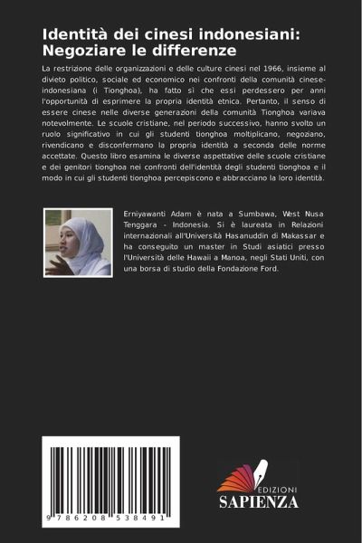 La restrizione delle organizzazioni e delle culture cinesi nel 1966, insieme al divieto politico, sociale ed economico nei confronti della comunità cinese-indonesiana (i Tionghoa), ha fatto sì che essi perdessero per anni l'opportunità di esprimere la propria identità etnica. Pertanto, il senso di essere cinese nelle diverse generazioni della comunità Tionghoa variava notevolmente. Le scuole cristiane, nel periodo successivo, hanno svolto un ruolo significativo in cui gli studenti tionghoa moltiplicano, negoziano, rivendicano e disconfermano la propria identità a seconda delle norme accettate. Questo libro esamina le diverse aspettative delle scuole cristiane e dei genitori tionghoa nei confronti dell'identità degli studenti tionghoa e il modo in cui gli studenti tionghoa percepiscono e abbracciano la loro identità.