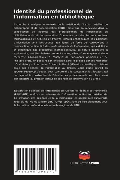 Il cherche à analyser le contexte de la création de l'Institut brésilien de bibliographie et de documentation (IBBD), ainsi que sa réflexivité dans la construction de l'identité des professionnels de l'information en bibliothéconomie et documentation. Soutenues par des facteurs sociaux, technologiques et culturels et d'autres intérêts économiques, les politiques d'information sont juxtaposées aux lignes de force qui corroborent la construction de l'identité des professionnels de l'information, qui est fluide et dynamique. Les procédures méthodologiques, de nature qualitative et exploratoire, ont été réalisées en sept étapes, allant d'une enquête et d'une recherche bibliographique à l'analyse de documents primaires et de l'histoire orale, en passant par l'inclusion dans le projet Scientific Memories : Oral History of Information Science in Brazil (Mémoire scientifique : histoire orale des sciences de l'information au Brésil). Cette étude devrait en appeler beaucoup d'autres pour comprendre le contexte et les facteurs qui ont façonné la construction de l'identité des professionnels sur place, ainsi que l'histoire du premier institut de sciences de l'information au Brésil.