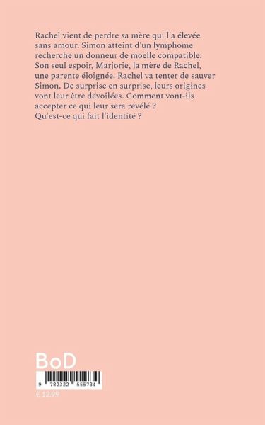 Rachel vient de perdre sa mère qui l'a élevée sans amour. Simon atteint d'un lymphome recherche un donneur de moelle compatible. Son seul espoir, Marjorie, la mère de Rachel, une parente éloignée. Rachel va tenter de sauver Simon. De surprise en surprise, leurs origines vont leur être dévoilées. Comment vont-ils accepter ce qui leur sera révélé ? Qu'est-ce qui fait l'identité ?
