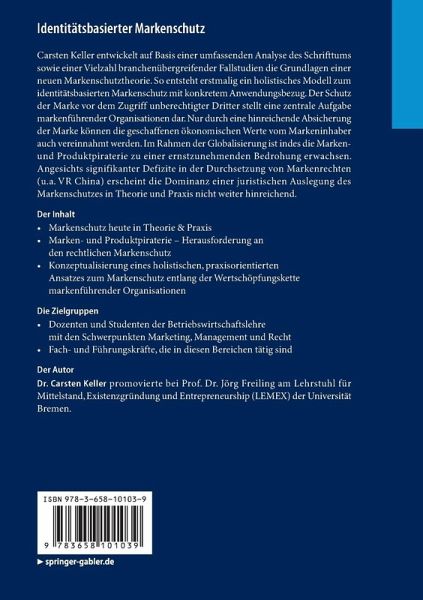 Carsten Keller entwickelt auf der Basis einer umfassenden Analyse des Schrifttums sowie einer Vielzahl branchenübergreifender Fallstudien die Grundlagen einer neuen Markenschutztheorie. So entsteht erstmalig ein holistisches Modell zum identitätsbasierten Markenschutz mit konkretem Anwendungsbezug. Der Schutz der Marke vor dem Zugriff unberechtigter Dritter stellt eine zentrale Aufgabe markenführender Organisationen dar. Nur durch eine hinreichende Absicherung der Marke können die geschaffenen ökonomischen Werte vom Markeninhaber auch vereinnahmt werden. Im Rahmen der Globalisierung ist indes die Marken- und Produktpiraterie zu einer ernstzunehmenden Bedrohung erwachsen. Angesichts signifikanter Defizite in der Durchsetzung von Markenrechten (u.a. VR China) erscheint die Dominanz einer juristischen Auslegung des Markenschutzes in Theorie und Praxis nicht weiter hinreichend.