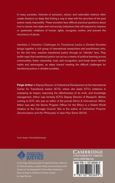 In many societies, histories of exclusion, racism and nationalist violence often create divisions so deep that finding a way to deal with the atrocities of the past seems nearly impossible. These societies face difficult practical questions about how to devise new state and civil society institutions that will respond to massive or systematic violations of human rights, recognize victims and prevent the recurrence of abuse. Identities in Transition: Challenges for Transitional Justice in Divided Societies brings together a rich group of international researchers and practitioners who, for the first time, examine transitional justice through an 'identity' lens. They tackle ways that transitional justice can act as a means of political learning across communities; foster citizenship, trust and recognition; and break down harmful myths and stereotypes, as steps toward meeting the difficult challenges for transitional justice in divided societies.