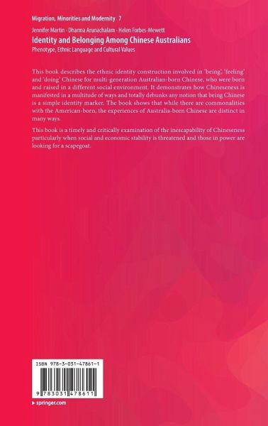 This book describes the ethnic identity construction involved in 'being', 'feeling' and 'doing' Chinese for multi-generation Australian-born Chinese, who were born and raised in a different social environment. It demonstrates how Chineseness is manifested in a multitude of ways and totally debunks any notion that being Chinese is a simple identity marker. The book shows that while there are commonalities with the American-born, the experiences of Australia-born Chinese are distinct in many ways. This book is a timely and critically examination of the inescapability of Chineseness particularly when social and economic stability is threatened and those in power are looking for a scapegoat.