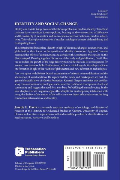 Identity and Social Change examines the thorny problem of modern identity. Trenchant critiques have come from identity politics, focusing on the construction of difference and the solidarity of minorities, and from academic deconstructions of modern subjectivity. This volume places identity in a broader sociological context of destabilizing and reintegrating forces.