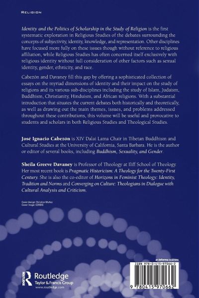 INTRODUCTION José Ignacio Cabezón Sheila Greeve Davaney; Chapter 1 BETWEEN IDENTITY AND FOOTNOTES Sheila Greeve Davaney; Chapter 2 IDENTITY AND THE WORK OF THE SCHOLAR OF RELIGION José Ignacio Cabezón; Chapter 3 RELIGIOUS IDENTITY AND THE STUDY OF BUDDHISM Francisca Cho; Chapter 4 FOLLOWING IN THE FOOTNOTES OF THE APOSTLE PAUL Pamela Eisenbaum; Chapter 5 NEITHER HERE NOR THERE: CROSSING BOUNDARIES BECOMING INSIDERS REMAINING CATHOLIC; Chapter 6 RELIGIOUS IDENTITY SCHOLARSHIP AND TEACHING RELIGION Rita M. Gross; Chapter 7 BALANCING ACTS: NEGOTIATING THE ETHICS OF SCHOLARSHIP AND IDENTITY Tazim R. Kassam; Chapter 8 POST-HOLOCAUST JEWISH IDENTITY AND THE ACADEMY: ON TRAVELING THE DIASPORA AND THE EXPERIENCE OF THE DOUBLE STANDARD Marc H. Ellis; Chapter 9 BEING JOHN WOODROFFE: SOME MYTHICAL REFLECTIONS ON THE POSTCOLONIAL STUDY OF HINDU TANTRA Jeffrey J. Kripal; Chapter 10 IDENTITY AS AN INTELLECTUAL PROBLEM Kwasi Wiredu; INDEX;