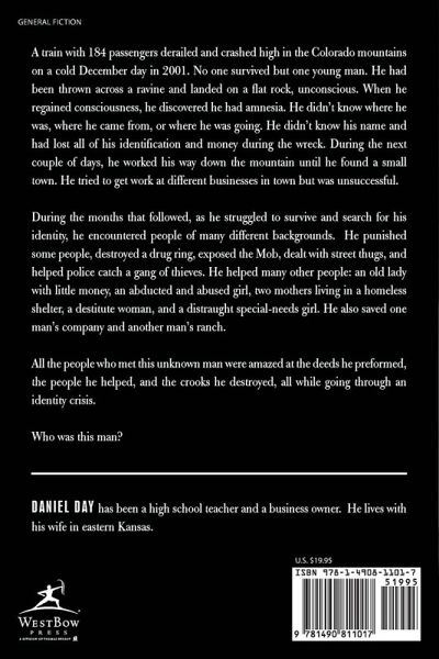 A train with 184 passengers derailed and crashed high in the Colorado mountains on a cold December day in 2001. No one survived but one young man. He had been thrown across a ravine and landed on a flat rock, unconscious. When he regained consciousness, he discovered he had amnesia. He didn't know where he was, where he came from, or where he was going. He didn't know his name and had lost all of his identification and money during the wreck. During the next couple of days, he worked his way down the mountain until he found a small town. He tried to get work at different businesses in town but was unsuccessful. During the months that followed, as he struggled to survive and search for his identity, he encountered people of many different backgrounds. He punished some people, destroyed a drug ring, exposed the Mob, dealt with street thugs, and helped police catch a gang of thieves. He helped many other people: an old lady with little money, an abducted and abused girl, two mothers living in a homeless shelter, a destitute woman, and a distraught special-needs girl. He also saved one man's company and another man's ranch. All the people who met this unknown man were amazed at the deeds he preformed, the people he helped, and the crooks he destroyed, all while going through an identity crisis. Who was this man?