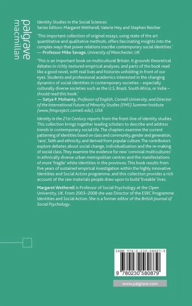 Introduction - Negotiating Liveable Lives: Intelligibility and Identity in Contemporary Britain; M.Wetherell Part I: CLASS AND COMMUNITY Individualisation and the Decline of Class Identity; A.Heath, J.Curtice & G.Elgenius 'I Don't Want to be Classed, But We Are All Classed': Making Liveable Lives Across Generations; B.Rogaly & B.Taylor Steel, Identity, Community: Regenerating Identities in a South Wales Town; V.Walkerdine White Middle-Class Identity Work Through 'Against the Grain' School Choices; D.James, D.Reay, G.Crozier, F.Jamieson, P.Beedell, S.Hollingworth & K.Williams Part II: ETHNICITIES AND ENCOUNTERS Ethnicities Without Guarantees: An Empirical Approach; R.Harris & B.Rampton 'Con-Viviality' and Beyond: Identity Dynamics in a Young Men's Prison; R.Earle & C.Phillips Imagining the 'Other'/Figuring Encounter: White English Middle-Class and Working-Class Identifications; S.Clarke, S.Garner & R.Gilmour The Subjectivities of Young Somali: The Impact of Processes of Disidentification and Disavowal; G.Valentine & D.Sporton Living London: Women Negotiating Identities in a Post-Colonial City; R.Cox, S.Jackson, M.Khatwa & D.Kiwan Part III: Popular Culture and Relationality The Making of Modern Motherhoods: Storying an Emergent Identity; R.Thomson, M.J.Kehily, L.Hadfield & S.Sharpe The Allure of Belonging: Young People's Drinking Practices and Collective Identification; C.Griffin, A.Bengry-Howell, C.Hackley, W.Mistral & I.Szmigin The Transformation of Intimacy: Classed Identities in the Moral Economy of Reality Television; B.Skeggs & H.Wood