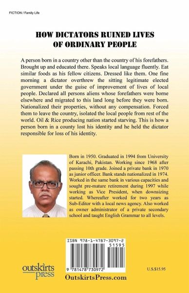 A person was born in a country, where his parents migrated during their childhood from another country under British Empire. When he was born in this country, though his look resembled his parents, for all practical purpose he considered himself son of the soil of that country. He speaks local language, eats local foods, wears local style of clothing and above all he does not able to read, writes or understand the native language of his fore-fathers. Everything was fine with him. When he was in Class V or VI, suddenly one fine morning a dictator took-over the reign of elected government in a blood-less coup and the trouble begins for all those persons whose fore-fathers do not belong to this country, were declared foreigners. His dream of studying steadily and pursuing his ambition to study MBA in the local university, shattered overnight. Luckily he and his entire family migrated to the country of his fore-fathers, but due to their long absence from their roots, could not able to settle down there and had to migrate to a neighboring country and settle down there. However, halfway through, before completion of his graduation that country broke into two parts and once again he and his family became refugees, (not in the sense that they have migrated from another country) but their country has left them high and dry after unable to contain foreign insurgencies and fled. This phenomenon has again compelled him and his family to migrate from there one by one and got settled in the remaining western part of that country. He completed his education, got reasonable job, got married and settled down there, despite several military takeovers during this period in that country. Gradually, a campaign of hatred was created and such people have become alienated from the local populace & felt insecure. This trend has forced him to think about his identity which was misplaced during these years. Who is he? Where does he belong to? What is his future? By migrating from one country