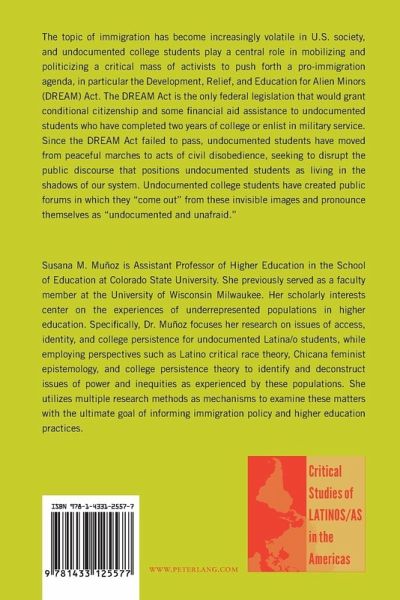Contents: Undocumented Journey - Stories of Migration, Family, and Schooling: Participant Profiles - College Access and Experiences in Higher Education for Undocumented Students ... «Why did they recruit us, if they aren't going to support us?» Unpacking the «Staying In» and «Coming Out» Process - ... «Yeah, it's kind of funny because every time I tell someone I don't have papers, they're like, 'No way, are you serious?'» - Social Activism and Defining «Undocumented and Unafraid» ... «After years of feeling powerless, feeling ashamed, and feeling afraid and to see people who have that courage and conviction to do something» - Cultivating Undocumented and Unafraid as a Form of Resistance to Legal Violence ... «We fight, sometimes, for single issues, but as human beings we aren't single issues» - From Undocumented to Becoming DACAmented ... «I licked my card and it tastes like plastic, it doesn't taste like freedom».