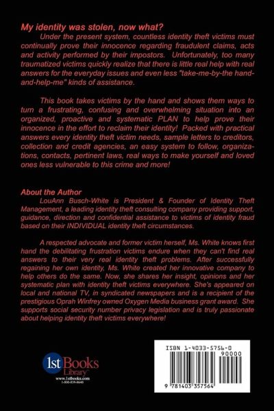 An excellent "how-to" book for identity theft victims providing real help, real answers and a real, step-by-step PLAN to help prove their victim status! 800,000 annual victims can gain the knowledge to turn agony into answers and trauma into triumph.