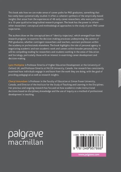 The book asks how we can make sense of career paths for PhD graduates, something that has rarely been systematically studied. It offers a coherent synthesis of the empirically-based insights that arose from the experiences of 48 early career researchers, who were participants in a 10-year qualitative longitudinal research program. The book has the power to inform other researchers' conceptual and methodological approaches to the study of post-PhD career trajectories.