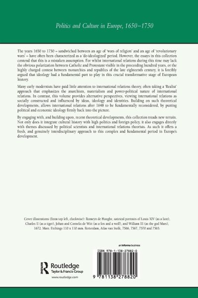 The years 1650 to 1750 - sandwiched between an age of 'wars of religion' and an age of 'revolutionary wars' - have often been characterized as a 'de-ideologized' period. However, the essays in this collection contend that this is a mistaken assumption. For whilst international relations during this time may lack the obvious polarization between Catholic and Protestant visible in the proceeding hundred years, or the highly charged contest between monarchies and republics of the late eighteenth century, it is forcibly argued that ideology had a fundamental part to play in this crucial transformative stage of European history. Many early modernists have paid little attention to international relations theory, often taking a 'Realist' approach that emphasizes the anarchism, materialism and power-political nature of international relations. In contrast, this volume provides alternative perspectives, viewing international relations as socially constructed and influenced by ideas, ideology and identities. Building on such theoretical developments, allows international relations after 1648 to be fundamentally reconsidered, by putting political and economic ideology firmly back into the picture. By engaging with, and building upon, recent theoretical developments, this collection treads new terrain. Not only does it integrate cultural history with high politics and foreign policy, it also engages directly with themes discussed by political scientists and international relations theorists. As such it offers a fresh, and genuinely interdisciplinary approach to this complex and fundamental period in Europe's development.