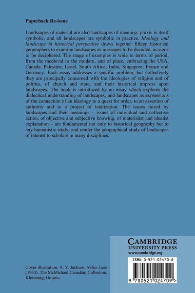 List of figures; List of Contributors; Preface; Introduction: on ideology and landscape Alan R. H. Baker; 1. Ideology and landscape in early printed maps of Jerusalem Rehav Rubin; 2. Ideological contexts and the reconstruction of biblical landscapes in the seventeenth and early eighteenth centuries: Dr Edward Wells and the historical geography of the Holy Land Robin A. Butlin; 3. Land-God-man: concepts of land ownership in traditional cultures in Eretz-Israel Ruth Kark; 4. Religious ideology and landscape formation: the case of the German Templars in Eretz-Israel Yossi Ben-Artzi; 5. Planned temple towns and Brahmin villages as spatial expressions of the ritual politics of medieval kingdoms in South India Hans-Jürgen Nitz; 6. Territorial strategies applied to captive peoples D. W. Meinig; 7. Ideology and landscape of settler colonialism in Virginia and Dutch South Africa: a comparative analysis Leonard Guelke; 8. Municipal sanitary ideology and the control of the urban environment in colonial Singapore Brenda S. A. Yeoh; 9. Ideology and the landscape of British Palestine, 1918-1929 Gideon Biger; 10. Ideology, identity, landscape and society in the lower colonies of British North America, 1840-1860 Graeme Wynn; 11. Interpreting a nation's identity: artists as creators of national consciousness Brian S. Osborne; 12. Collective consciousness and the local landscape: national ideology and the commune council of Mesland (Loir-et-Cher) as landscape architect during the nineteenth century Alan R. H. Baker; 13. A contrast of Old World ideology: Germans and Scotch-Irish in the Ozarks Russel L. Gerlach; 14. Ideology in the planned order upon the land: the example of Germany Dietrich Denecke; 15. Parading: a lively tradition in early Victorian Toronto Peter G. Goheen; Index.