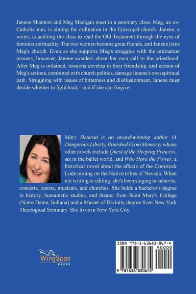 Janene Shannon and Meg Madigan meet in a seminary class. Meg, an ex-Catholic nun, is aiming for ordination in the Episcopal church. Janene, a writer, is auditing the class to read the Old Testament through the eyes of feminist spirituality. The two women become great friends, and Janene joins Meg's church. Even as she supports Meg's struggles with the ordination process, however, Janene wonders about her own call to the priesthood. After Meg is ordained, tensions develop in their friendship, and certain of Meg's actions, combined with church politics, damage Janene's own spiritual path. Struggling with issues of bitterness and disillusionment, Janene must decide whether to fight back - and if she can forgive.