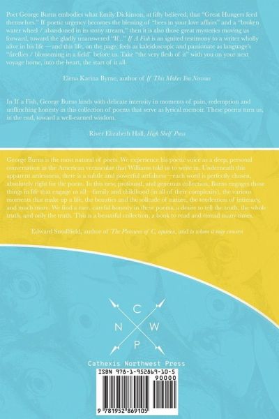 Full Length collection of poetry by George Burns. Poet George Burns embodies what Emily Dickinson, at fifty believed, that "Great Hungers feed themselves." If poetic urgency becomes the blessing of "bees in your love affairs" and a "broken water wheel / abandoned in its stony stream," then it is also those great mysteries moving us forward, toward the gladly unanswered "If..." If A Fish is an ignited testimony to a writer wholly alive in his life --and this life, on the page, feels as kaleidoscopic and passionate as language's "fireflies / blossoming in a field" before us. Take "the very flesh of it" with you on your next voyage home, into the heart, the start of it all. Elena Karina Byrne, author of If This Makes You Nervous In If a Fish, George Burns lands with delicate intensity in moments of pain, redemption and unflinching honesty in this collection of poems that serve as lyrical memoir. These poems turn us, in the end, toward a well-earned wisdom. River Elizabeth Hall, High Shelf Press George Burns is the most natural of poets. We experience his poetic voice as a deep, personal conversation in the American vernacular that Williams told us to write in. Underneath this apparent artlessness, there is a subtle and powerful artfulness-each word is perfectly chosen, absolutely right for the poem. In this new, profound, and generous collection, Burns engages those things in life that engage us all-family and childhood (in all of their complexity), the various moments that make up a life, the beauties and the solitude of nature, the tenderness of intimacy, and much more. We find a rare, careful honesty in these poems, a desire to tell the truth, the whole truth, and only the truth. This is a beautiful collection, a book to read and reread many times. Edward Smallfield, author of The Pleasures of C, equinox, and to whom it may concern