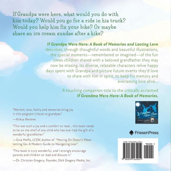 If Grandpa were here, what would you do with him today? Would you go for a ride in his truck? Would you help him fix your bike? Or maybe share an ice cream sundae after a hike? If Grandpa Were Here: A Book of Memories and Lasting Love describes, through thoughtful words and beautiful illustrations, the special moments-remembered or imagined-of the fun times children shared with a beloved grandfather they may now be missing. Its diverse, relatable characters relive happy days spent with Grandpa and picture future events they'd love to share with him in spirit, to keep his memory and everlasting love alive... A touching companion title to the critically acclaimed If Grandma Were Here: A Book of Memories.