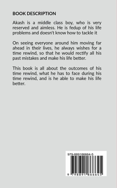 This is the story of a boy named Akash, who is fed up of his problems. So, he always wishes for time to rewind so that he can avoid certain mistakes and improve his life by just going in the past. So, thus his life really improves by time rewind? To know this, read this book.