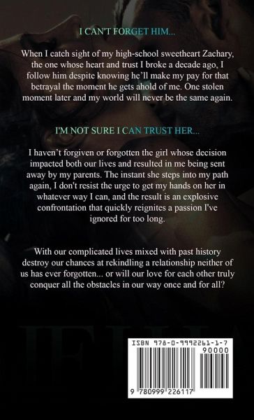 I can't forget him... When I catch sight of my high-school sweetheart Zachary, the one whose heart and trust I broke a decade ago, I follow him despite knowing he'll make my pay for that betrayal the moment he gets ahold of me. One stolen moment later and my world will never be the same again. I'm not sure I can trust her... I haven't forgiven or forgotten the girl whose decision impacted both our lives and resulted in me being sent away by my parents. The instant she steps into my path again, I don't resist the urge to get my hands on her in whatever way I can, and the result is an explosive confrontation that quickly reignites a passion I've ignored for too long. With our complicated lives mixed with past history destroy our chances at rekindling a relationship neither of us has ever forgotten... or will our love for each other truly conquer all the obstacles in our way once and for all?