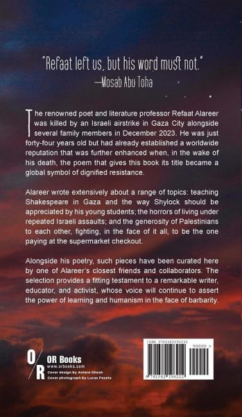 This rich, elegiac compilation of work from the late Palestinian poet and professor, Refaat Alareer, brings together his marvellous poetry and deeply human writing about literature, teaching, politics, and family.