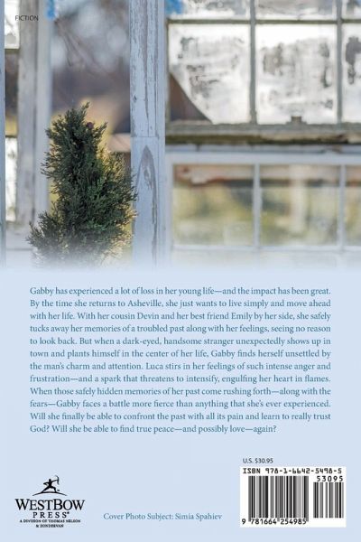 Gabby has experienced a lot of loss in her young life-and the impact has been great. By the time she returns to Asheville, she just wants to live simply and move ahead with her life. With her cousin Devin and her best friend Emily by her side, she safely tucks away her memories of a troubled past along with her feelings, seeing no reason to look back. But when a dark-eyed, handsome stranger unexpectedly shows up in town and plants himself in the center of her life, Gabby finds herself unsettled by the man's charm and attention. Luca stirs in her feelings of such intense anger and frustration-and a spark that threatens to intensify, engulfing her heart in flames. When those safely hidden memories of her past come rushing forth-along with the fears-Gabby faces a battle more fierce than anything that she's ever experienced. Will she finally be able to confront the past with all its pain and learn to really trust God? Will she be able to find true peace-and possibly love-again?