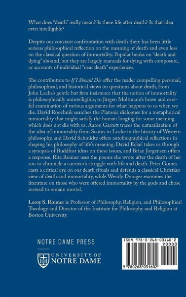 What does "death" really mean? Is there life after death? Is that idea even intelligible? Despite our constant confrontation with death there has been little serious philosophical reflection on the meaning of death and even less on the classical question of immortality. Popular books on "death and dying" abound, but they are largely manuals for dying with composure, or individual "near death" experiences of light at the end of the tunnel. This lively conversation includes various views on these matters, from John Lachs's gentle but firm insistence that the notion of immortality is philosophically unintelligible, to Jürgen Moltmann's brave and careful examination of various arguments for what happens to us when we die. David Roochnik searches the Platonic dialogues for a metaphorical immortality which might satisfy the human longing for some meaning which does not die with us. Aaron Garrett traces the naturalization of the idea of immortality from Scotus to Locke in the history of Western philosophy, and David Schmidtz offers autobiographical reflections in shaping his philosophy of life's meaning. David Eckel takes us through a synopsis of Buddhist ideas on these issues, and Brian Jorgensen offers a response. Rita Rouner uses the poems she wrote after the death of her son to chronicle a survivor's struggle with life and death. Peter Gomes casts a critical eye on our death rituals, and defends a classical Christian view of death and immortality, while Wendy Doniger examines the literature on those who were offered immortality by the gods and chose instead to remain mortal.