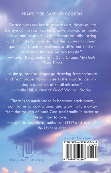 The debut collection by poet Gardner Dorton, If I Were God I Would Also Start with Light is a resurrection of the gay self within a dominion of secular, conservative states. Poems within have been published in literary journals such as HAD, Rattle, Homology Lit, Olney Magazine, The Florida Review, Glass: A Journal of Poetry, and Ghost City Press.