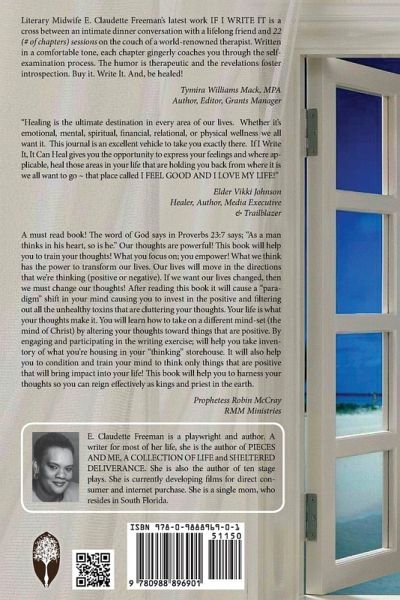 Emily Claudette Freeman has done it again! In her typical warm and introspective style, she shares writings that engage readers to write the very words that will release challenges, burdens, heartaches and disappointments and make way for healing. In If I Write It, It Can Heal, Freeman shares dreams, spiritual revelation and personal experiences on the road to awakening and insight. If you are looking for a personal, non-invasive tool to ease into release and relief, If I Write It, It Can Heal is the book for you.
