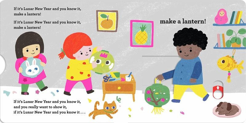 If it's Lunar New Year and you know it . . . sing along with this joyful book with chunky sliders to push and pull! Moving sliders bring this colorful sing-along novelty book to life as children take part in four Lunar New Year activities: making a lantern, filling their plates, dancing along, and looking at the lights! Sliders chunky enough for small hands to easily grasp push, pull, or turn to reveal a surprise on every page. The song can be sung or read aloud, or scan the QR code on the back of the book to hear the music! The joyful neon artwork and rhythmic text makes this is the perfect book to share together in celebration of the Lunar New Year. Scan the Stories Aloud QR code on the back cover to sing along with the song!