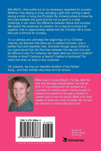 BALANCE--that subtle but oh so necessary ingredient for success. Whether it be playing a song, swinging a golf club, surfing a wave, raising a child, or living the Christian life, knowing where to draw the fine lines between the good and the not-so-good is a daily challenge. It can mean the difference between failure and success. We search the scriptures for wisdom, for a new tip to bring it all together, only to experientially realize that the Christian life is more than just a formula for success. To our demise and ultimately the beginnings of our Christian maturity, we discover that there are no perfect formulas, only a perfect God and imperfect man. And even though Jesus Christ is our supernatural link, the fine lines between His way and ours can be difficult to see. For instance, last week were you bold or prideful? Humble or timid? Cautious or fearful? Faithful or foolhardy? So many fine lines; so easy to fool ourselves. Oft unaware, we sing our heartfelt rendition of the Perfect Song...and then wonder why there isn't an encore.