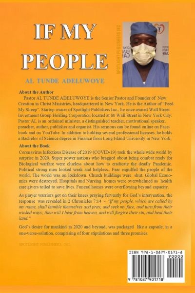 The 4 steps to divine healing, revealed in this book, will help you and empower you to help others break through the COVID-19 pandemic and other emotional and physical sicknesses and diseases. There is light at the end of the tunnel. It will change your life. The Coronavirus Infectious Disease of 2019 (COVID-19) took the whole wide world by surprise in 2020. Super power nations who bragged about being combat ready for Biological warfare were clueless about how to eradicate the deadly Pandemic. Political strong men looked weak and helpless.. Fear engulfed the people of the world. The world was on lockdown. As prayer warriors got on their knees praying fervently for God's intervention , the response was revealed in 2 Chronicles 7:14 .