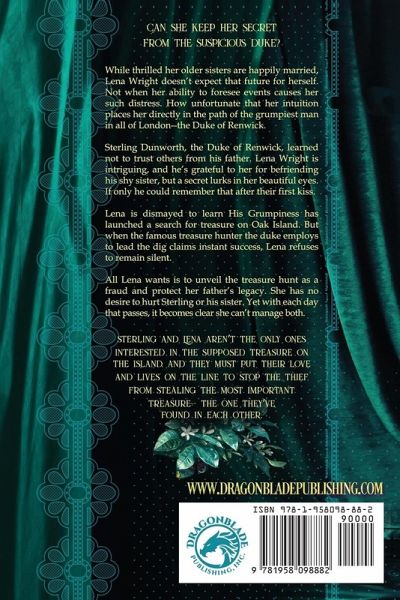 Can she keep her secret from the suspicious duke? While thrilled her older sisters are happily married, Lena Wright doesn't expect that future for herself. Not when her ability to foresee events causes her such distress. How unfortunate that her intuition places her directly in the path of the grumpiest man in all of London--the Duke of Renwick. Sterling Dunworth, the Duke of Renwick, learned not to trust others from his father. Lena Wright is intriguing, and he's grateful to her for befriending his shy sister, but a secret lurks in her beautiful eyes. If only he could remember that after their first kiss. Lena is dismayed to learn His Grumpiness has launched a search for treasure on Oak Island. But when the famous treasure hunter the duke employs to lead the dig claims instant success, Lena refuses to remain silent. All Lena wants is to unveil the treasure hunt as a fraud and protect her father's legacy. She has no desire to hurt Sterling or his sister. Yet with each day that passes, it becomes clear she can't manage both. Sterling and Lena aren't the only ones interested in the supposed treasure on the island, and they must put their love and lives on the line to stop the thief from stealing the most important treasure--the one they've found in each other. The Duke's Lost Treasures Once Upon a Duke's Wish A Kiss from a Marquess If Not for the Duke