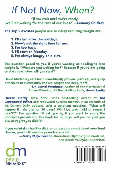 ARE YOU READY TO CREATE YOUR THINNER SELF? Are you frustrated with trying diet, after diet, after diet? Are you tired of losing the same 10 pounds over, and over again? Do you want to make others envious & jealous of how good you'll look and feel? Then this book is for you! Are You Puzzled by Not Achieving Your Weight Loss Goal Even Though You Know What to Do? This book can help you attain your weight loss goals because David Medansky has been where you are. He felt embarrassed and frustrated before he lost the weight himself. His turning point was when he posed the question to himself, If Not Now, When? So, what are YOU waiting for? Because if you're not going to start now to achieve your weight loss goals, when will you start? Unlike other diet books, this book teaches you how to reduce weight by making small steps to your daily eating routines. "David Medansky sets forth scientifically proven, practical, everyday principles to successfully reduce weight and keep it off." - Dr. David Friedman, author of the International Award -Winning, #1 Best-Selling book, Food Sanity. Bottom Line: Make others envious and jealous of how good you'll look and feel because you finally learned not only WHAT to do but HOW to do it.