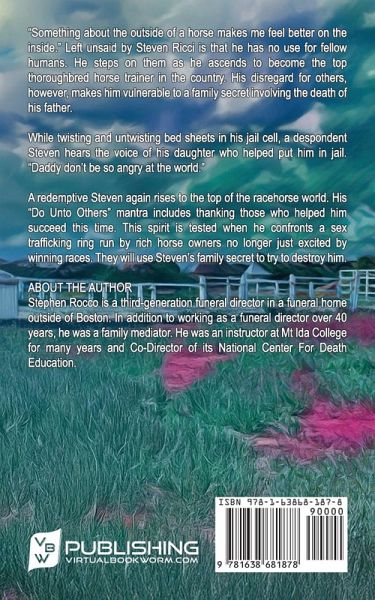"Something about the outside of a horse makes me feel better on the inside." Left unsaid by Steven Ricci is that he has no use for fellow humans. He steps on them as he ascends to become the top thoroughbred horse trainer in the country. His disregard for others, however, makes him vulnerable to a family secret involving the death of his father. While twisting and untwisting bed sheets in his jail cell, a despondent Steven hears the voice of his daughter who helped put him in jail. "Daddy don't be so angry at the world." A redemptive Steven again rises to the top of the racehorse world. His "Do Unto Others" mantra includes thanking those who helped him succeed this time. This spirit is tested when he confronts a sex trafficking ring run by rich horse owners no longer just excited by winning races. They will use Steven's family secret to try to destroy him.