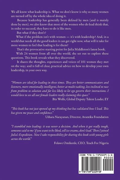 "We all know what leadership is. What we don't know is why so many women are turned off by the whole idea of doing it. Because leadership has generally been defined by men (and is mainly done by men), we also know that most of the women who do lead think that, in order to succeed, they have to do it like men. But what if they don't? What if the problem isn't with women - it's with leadership? And, in a world that needs all the good leaders it can get right now, what will it take for more women to feel that leading is for them? That's the provocative starting point for Julia Middleton's latest book. With 24 women from all over the world, she set out to explore these questions. This book reveals what they discovered. It shares the thoughts, experiences and voices of 101 women they met on the way; and is full of clear, practical advice on how to develop your own leadership, in your own way."