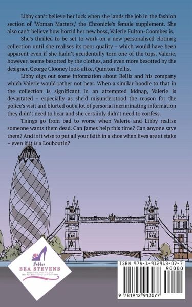 Libby can’t believe her luck when she lands the job in the fashion section of ‘Woman Matters’ the Chronicle’s female supplement. She also can’t believe how horrid her new boss, Valerie Fulton-Coombes is. She’s thrilled to be set to work on a new personalised clothing collection until she realises its poor quality – which would have been apparent even if she hadn’t accidentally torn one of the tops. Valerie, however, seems besotted by the clothes, and even more besotted by the designer, George Clooney look-alike, Quinton Bellis. Libby digs out some information about Bellis and his company which Valerie would rather not hear. When a similar hoodie to that in the collection is significant in an attempted kidnap, Valerie is devastated – especially as she’d misunderstood the reason for the police’s visit and blurted out a lot of personal incriminating information they didn’t need to hear and she certainly didn’t need to confess. Things go from bad to worse when Valerie and Libby realise someone wants them dead. Can James help this time? Can anyone save them? And is it wise to put all your faith in a shoe when lives are at stake – even if it is a Louboutin?