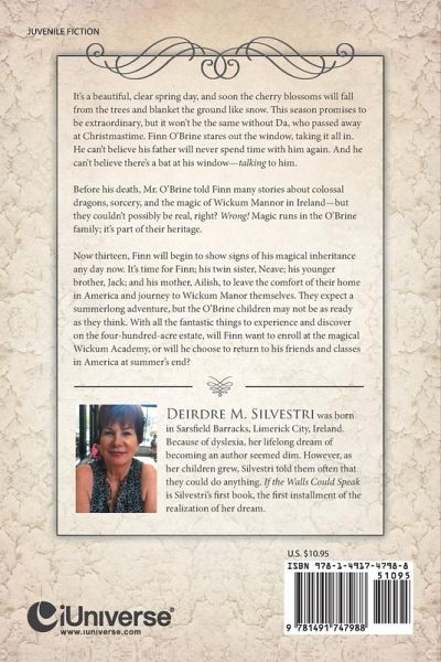 It's a beautiful, clear spring day, and soon the cherry blossoms will fall from the trees and blanket the ground like snow. This season promises to be extraordinary, but it won't be the same without Da, who passed away at Christmastime. Finn O'Brine stares out the window, taking it all in. He can't believe his father will never spend time with him again. And he can't believe there's a bat at his window-talking to him. Before his death, Mr. O'Brine told Finn many stories about colossal dragons, sorcery, and the magic of Wickum Mannor in Ireland-but they couldn't possibly be real, right? Wrong! Magic runs in the O'Brine family; it's part of their heritage. Now thirteen, Finn will begin to show signs of his magical inheritance any day now. It's time for Finn; his twin sister, Neave; his younger brother, Jack; and his mother, Ailish, to leave the comfort of their home in America and journey to Wickum Manor themselves. They expect a summerlong adventure, but the O'Brine children may not be as ready as they think. With all the fantastic things to experience and discover on the four-hundred-acre estate, will Finn want to enroll at the magical Wickum Academy, or will he choose to return to his friends and classes in America at summer's end?