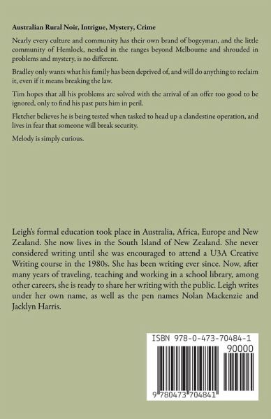 Australian Rural Noir, Intrigue, Mystery, Crime Nearly every culture and community has their own brand of bogeyman, and the little community of Hemlock, nestled in the ranges beyond Melbourne and shrouded in problems and mystery, is no different. Bradley only wants what his family has been deprived of, and will do anything to reclaim it, even if it means breaking the law. Tim hopes that all his problems are solved with the arrival of an offer too good to be ignored, only to find his past puts him in peril. Fletcher believes he is being tested when tasked to head up a clandestine operation, and lives in fear that someone will break security. Melody is simply curious.