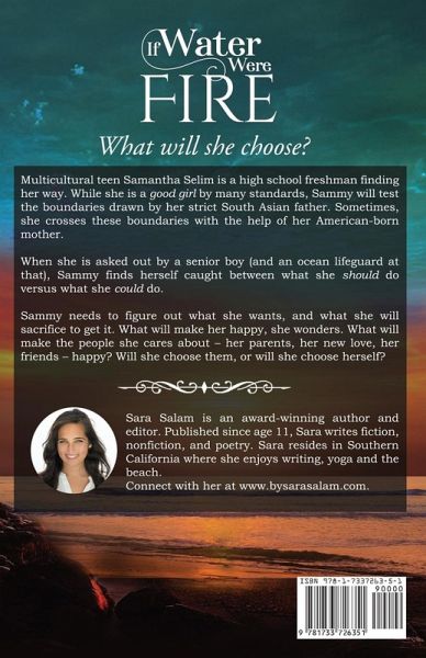 Multicultural teen Samantha Selim is a high school freshman finding her way. While she is a good girl by many standards, Sammy will test the boundaries drawn by her strict South Asian father. Sometimes, she crosses these boundaries with the help of her American-born mother. When she is asked out by a senior boy (and an ocean lifeguard at that), Sammy finds herself caught between what she should do versus what she could do. From date nights at the beach with her boyfriend to cat fights on the quad with her so-called "friends," Sammy shares her unique perspective with her readers, as a product of a multicultural household, as well as a rule follower with observations that transcend teen girl meanness, amidst the backdrop of an affluent beachside town. Ultimately, Sammy needs to figure out what she wants, and what she will sacrifice to get it. What will make her happy, she wonders. What will make the people she cares about - her parents, her new love, her friends - happy? Will she choose them, or will she choose herself? If Water Were Fire is told from Sammy's point of view, offering a relatable perspective to high school teens and young adults alike about how difficult growing up can be and the choices we are faced with. This #ownvoices novel also includes original poetry, written by author Sara Salam during her own high school years. If Water Were Fire challenges boundaries across many dimensions, including with peers, with parents, within ourselves.