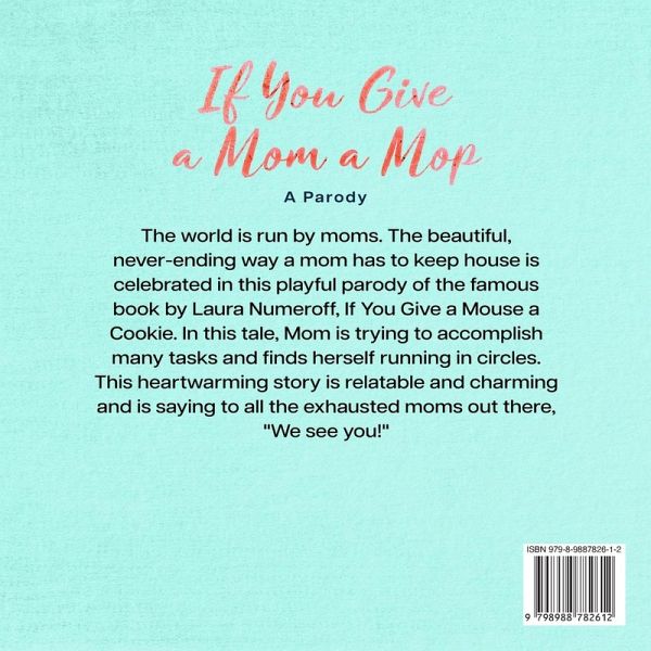 If You Give a Mom a Mop: A Parody The world is run by moms. The beautiful, never-ending way a mom has to keep house is celebrated in this playful parody of the famous book by Laura Numeroff, If You Give a Mouse a Cookie. In this tale, Mom is trying to accomplish many tasks and finds herself running in circles. This heartwarming story is relatable and charming and is saying to all the exhausted moms out there, "We see you!"