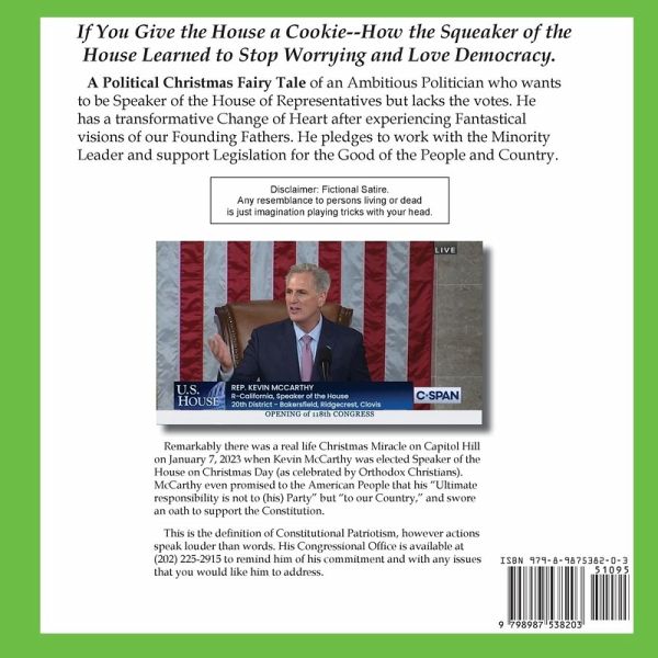 A Christmas fairy tale set on Capitol Hill about a cynical politician who wants to become Speaker of the House but lacks the required votes. After eating a magical cookie and having a fantastical adventure with visions of the founding fathers the cynical politician finds the true meaning of America and becomes a Constitutional Patriot. The Congressman ekes out a bipartisan victory to become Squeaker of the House and goes on to pass popular bills for the benefit of all the American People. Written in verse like The Night Before Christmas, having a plot like Dicken's A Christmas Carol, and a featuring a cover illustration parodying If You Give a Mouse a Cookie, the humorous political tale conjures a possible future with political goodwill for all.