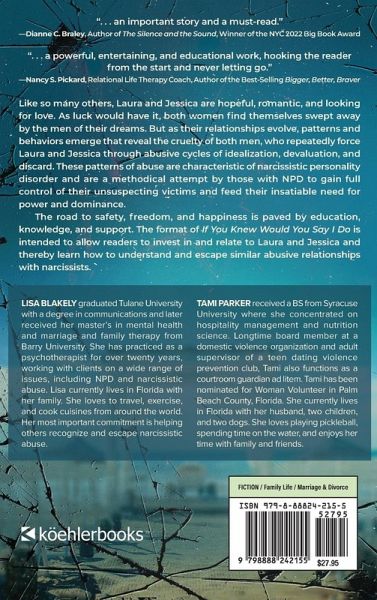 Like so many others, Laura and Jessica are hopeful, romantic, and looking for love. As luck would have it, both women find themselves swept away by the men of their dreams. But as their relationships evolve, patterns and behaviors emerge that reveal the cruelty of both men, who repeatedly force Laura and Jessica through abusive cycles of idealization, devaluation, and discard. These patterns of abuse are characteristic of narcissistic personality disorder and are a methodical attempt by those with NPD to gain full control of their unsuspecting victims and feed their insatiable need for power and dominance. The road to safety, freedom, and happiness is paved by education, knowledge, and support. The format of If You Knew Would You Say I Do is intended to allow readers to invest in and relate to Laura and Jessica and thereby learn how to understand and escape similar abusive relationships with narcissists.