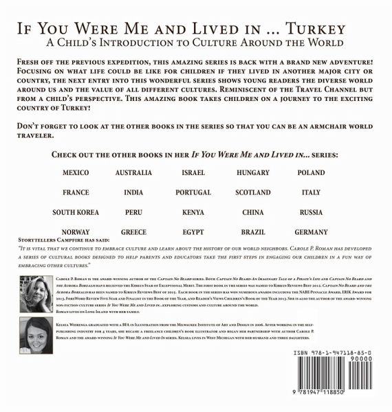 Number four in a series of world culture, If You Were Me and Lived in... Turkey, explores cultural differences through a child's understanding. A respectful and lively treatment of the subtle differences of the people from different parts of the globe we share. Join Carole P.Roman as she travels to learn out the people, culture, and customs of the people Turkey.